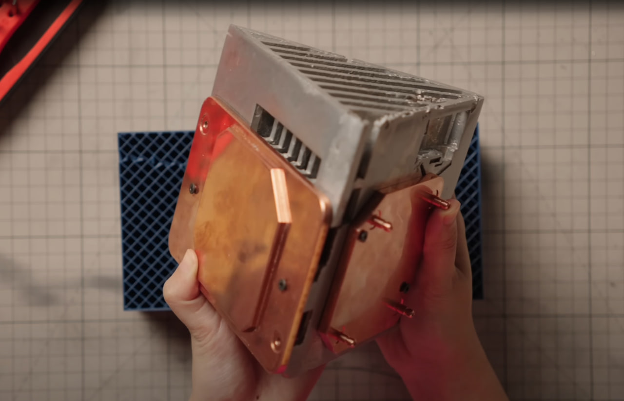 XNZ сначала напечатала треугольный радиатор на 3D-принтере, но фрезеровка из металла оказалась слишком дорогой. Тогда в ход пошла традиционная технология.