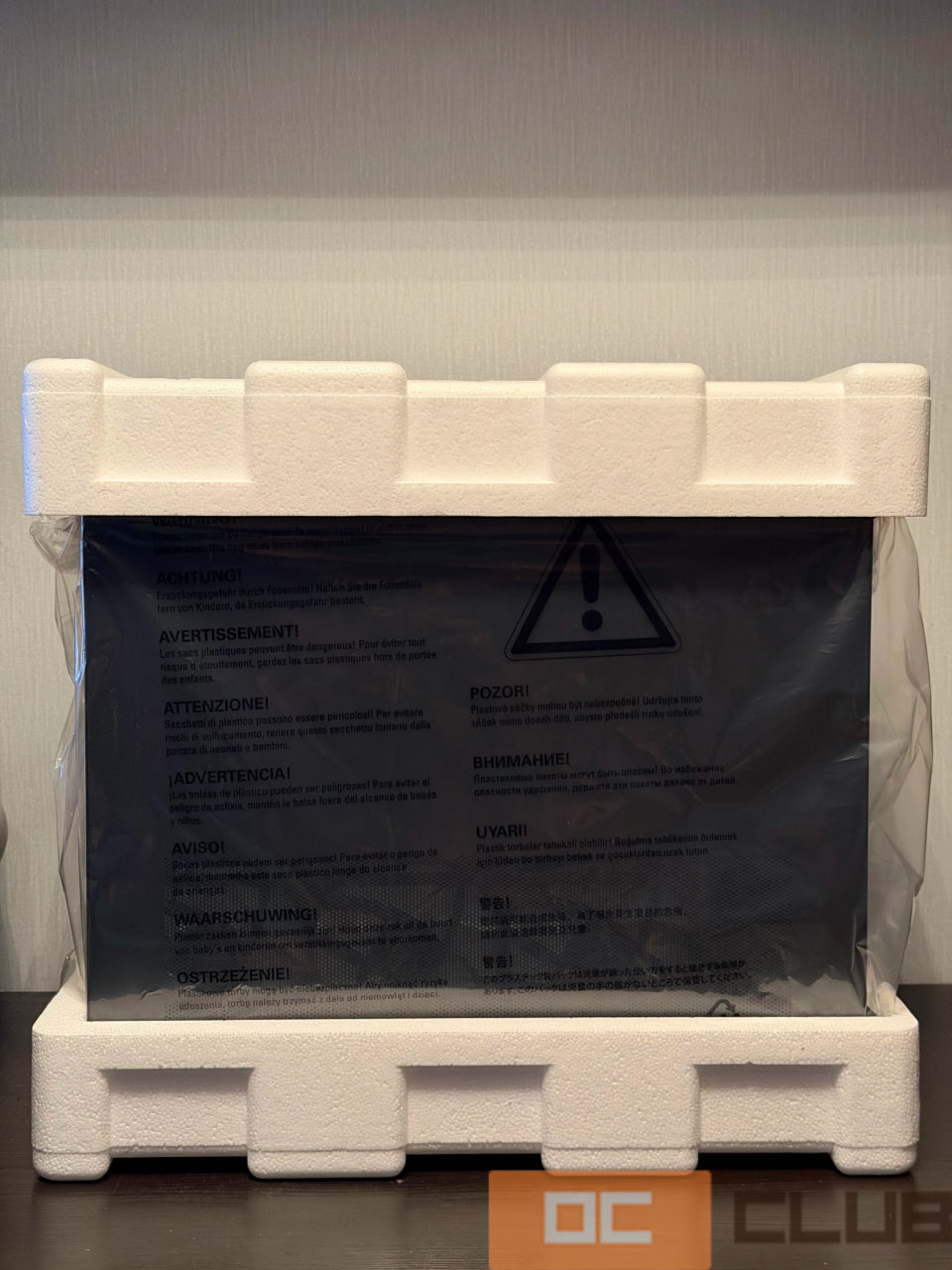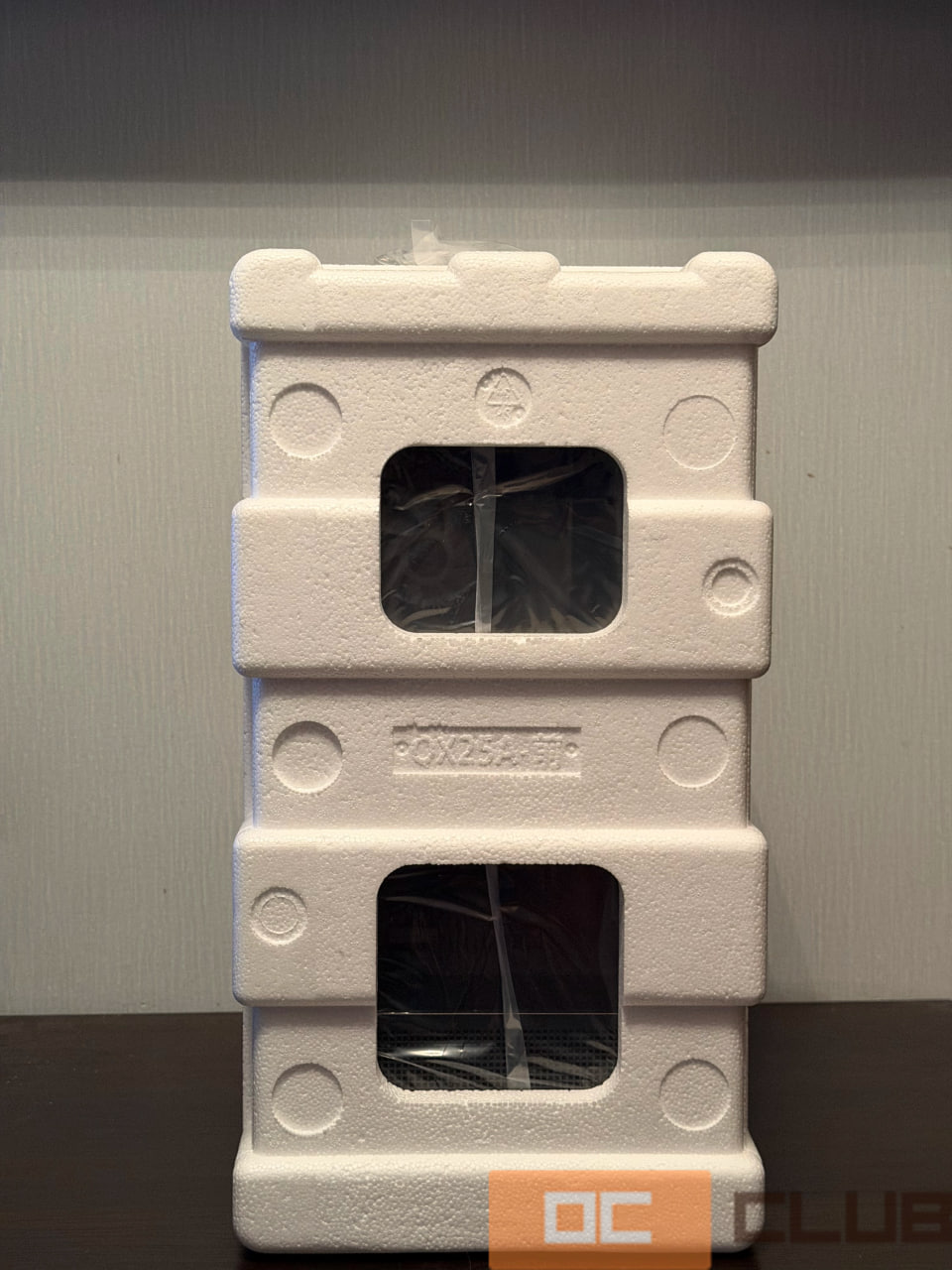 Корпус упакован в полиэтиленовый пакет для защиты от пыли и царапин и зафиксирован с двух сторон пенопластовыми вставками. Это немного разочаровывает, поскольку за корпус стоимостью около 7000 рублей хотелось бы видеть более мягкую упаковку, например поролон. В то же время коробка имеет усиленные углы: используется нахлёст картона и дополнительные диагональные картонные уголки для повышения жёсткости конструкции.