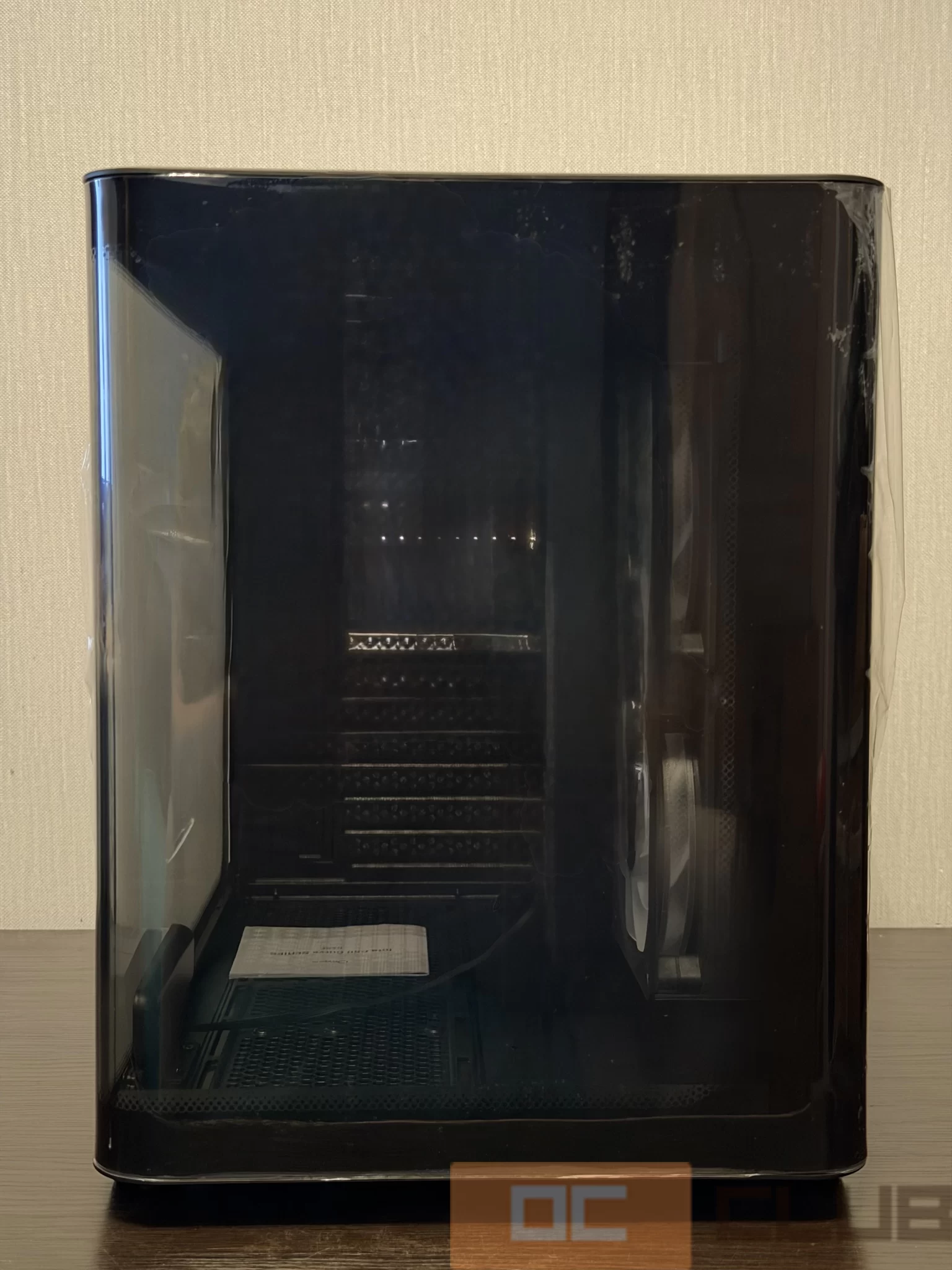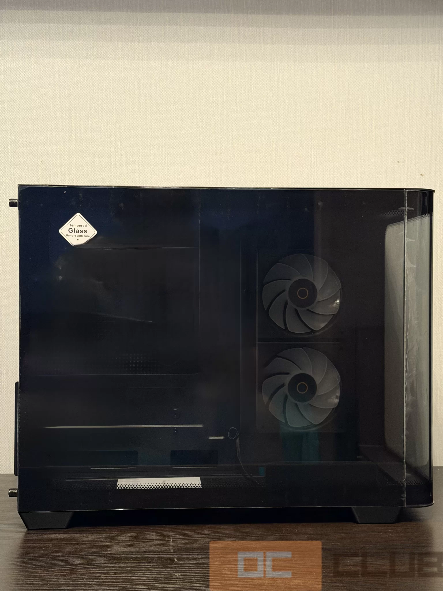 Начнём с плюсов. Корпус действительно выглядит эффектно. Изогнутое стекло — тренд, который только набирает популярность, и Ocypus удачно его использует. Такой дизайн избавляет от визуальных «острых углов» и делает обзор комплектующих более комфортным.