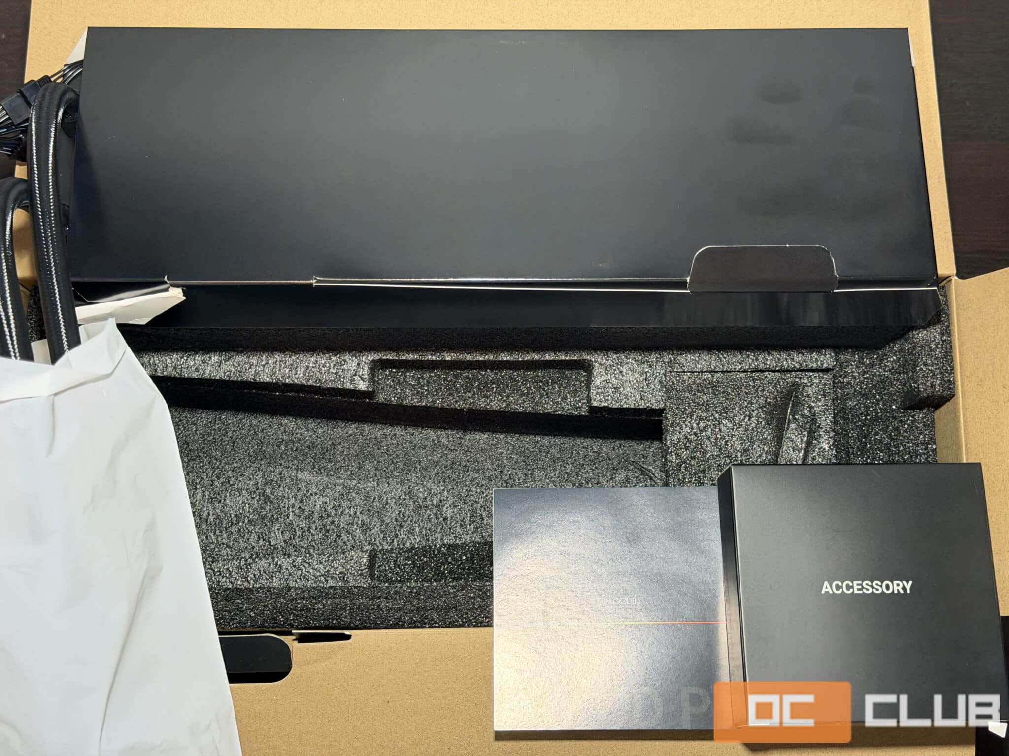 Подходим и ко второму плюсу упаковки, среди бесчисленных вариаций пенопласта и картонных коробок, наконец полноценный поролоновый лоток, который не только лучше защищает от внешнего воздействия, но и прилично выглядит. Радиатор дополнительно завернут в плотный картон.