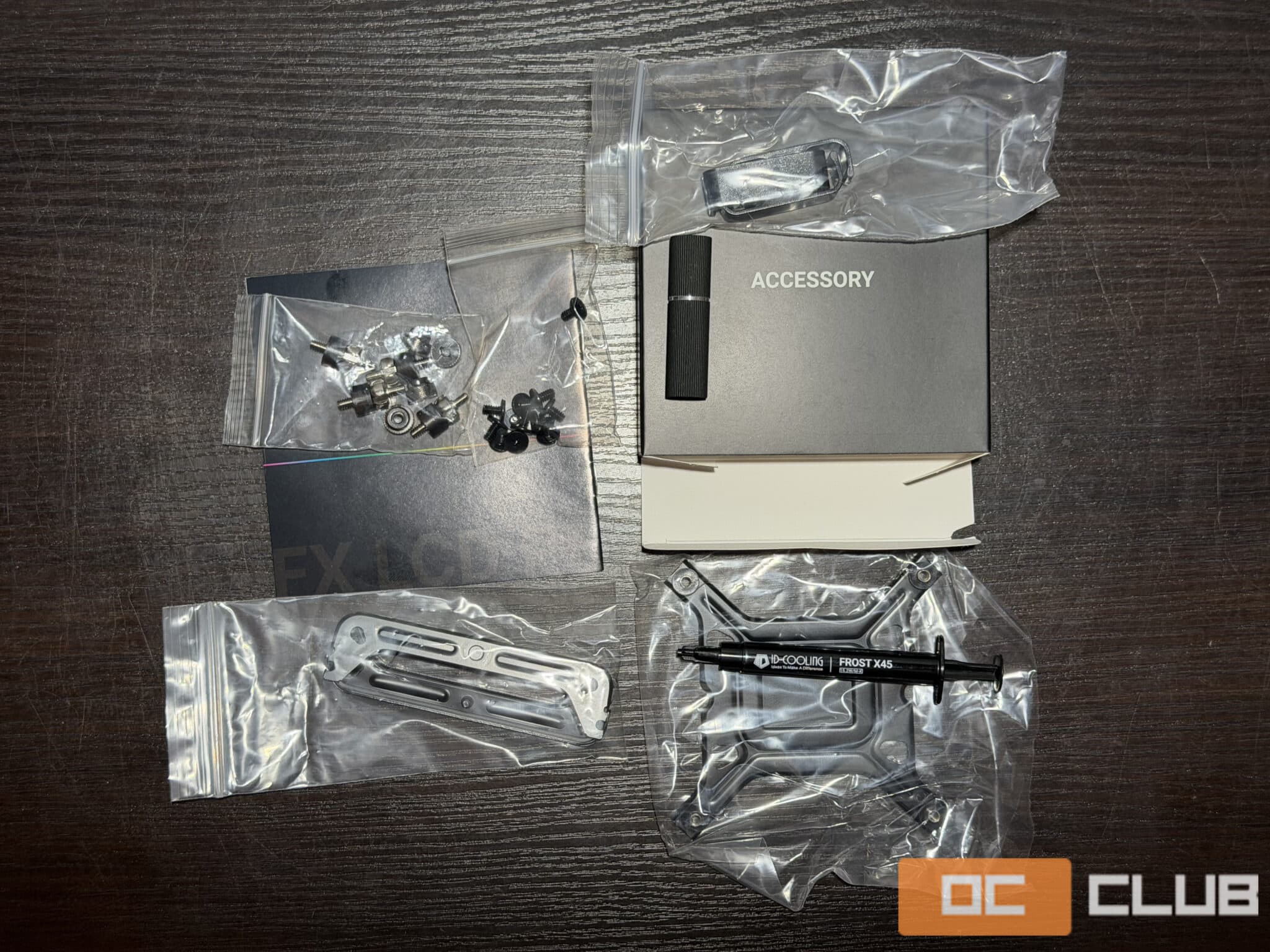 Комплект тоже довольно богатый, помимо креплений для всех сокетов по спецификаций, идет комплект плюшек. Первый раз вижу инструмент в комплекте для прикручивания крепежных стоек, в качестве приятного бонуса большой тюбик термопасты и фиксаторы для шлангов.