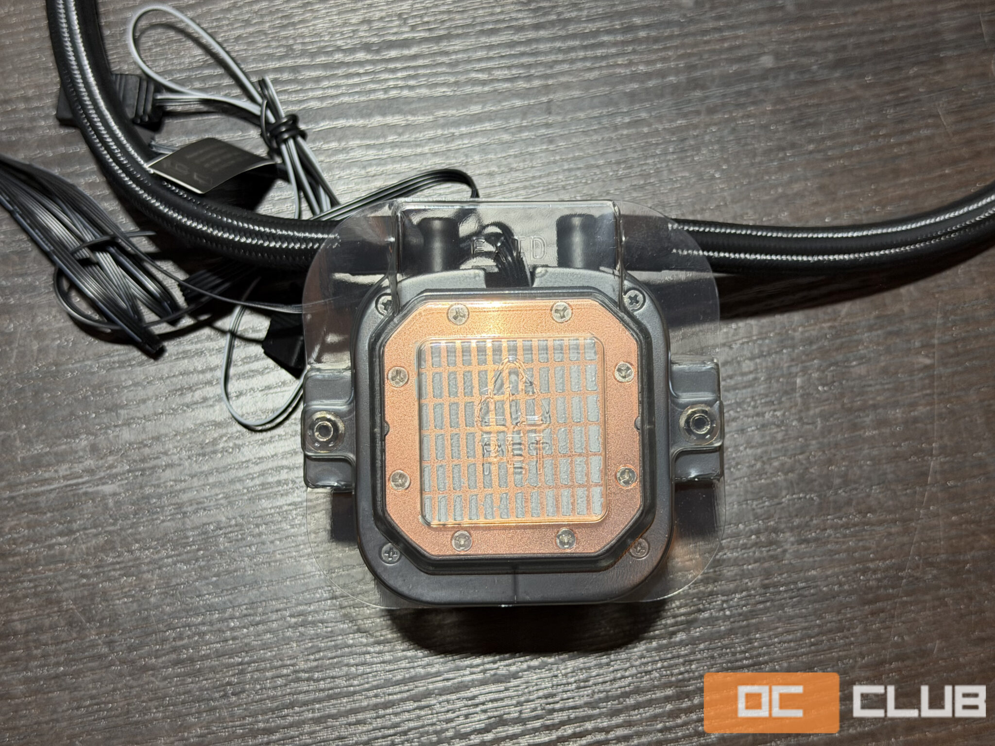 Экран помпы идет в защитной пленке, что бы избежать царапин и изображение было идеальным. Медная пятка прикрыта пластиковой защитой место обычной пленки, так как на нее уже нанесена термопаста. Довольно интересное решение, потому что в комплекте уже идет большой тюбик термопасты. Экранчик небольшой, но хорошо вписан в дизайн и сочетается с круговой подсветкой вокруг него.